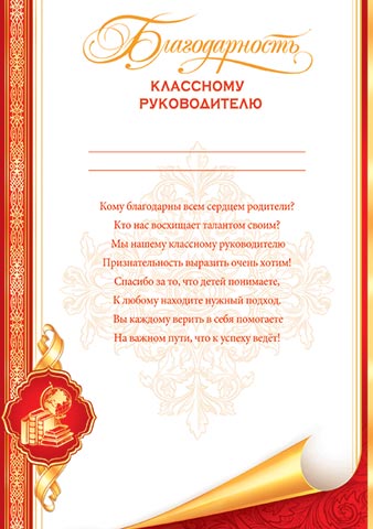Благодарность классному руководителю 9-02/10/Россия